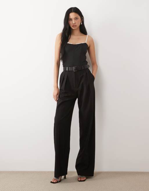 ASOS DESIGN Tall – Czarne eleganckie spodnie z szerokimi nogawkami, zakładkami i paskiem