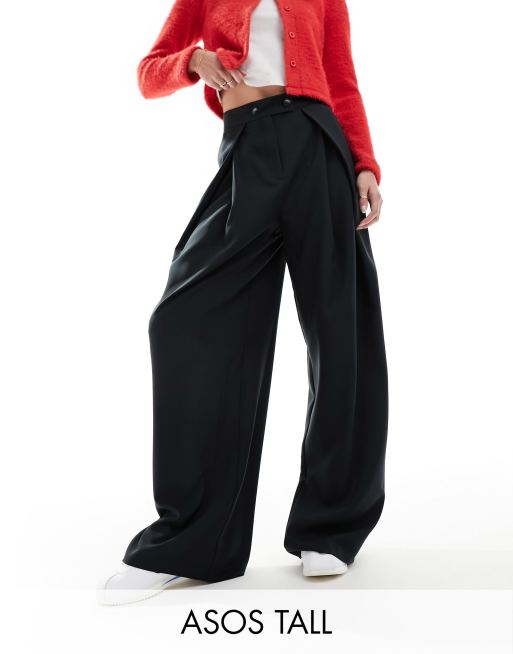 ASOS DESIGN Tall – Czarne spodnie z szerokimi nogawkami i zakładką z przodu