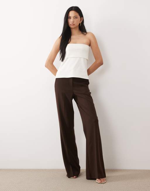 ASOS DESIGN – Tall Czekoladowe dopasowane spodnie z rozszerzanymi nogawkami