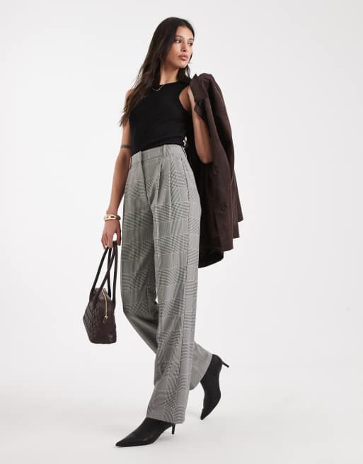 ASOS DESIGN Tall – Dopasowane spodnie w kratkę z podwyższonym stanem i zakładkami