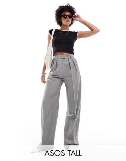 ASOS DESIGN Tall – Dopasowane szare spodnie z szerokimi nogawkami i zakładkami