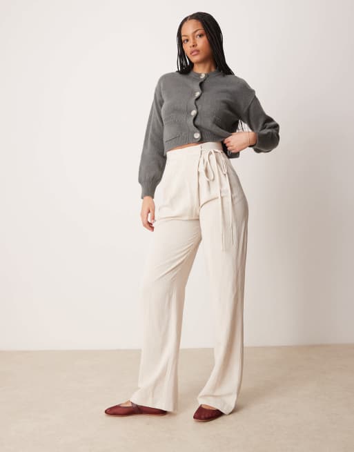 ASOS DESIGN Tall – Dopasowane szarobeżowe spodnie z kopertowym wiązaniem w talii