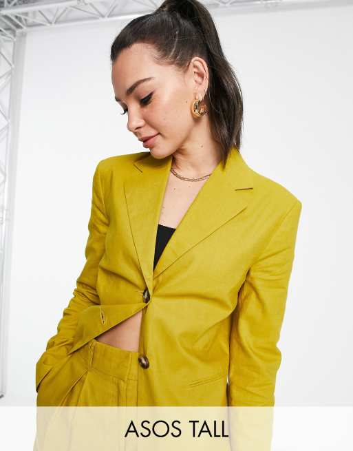 ASOS DESIGN Tall – Lniana prosta marynarka garniturowa w kolorze złotej palmy