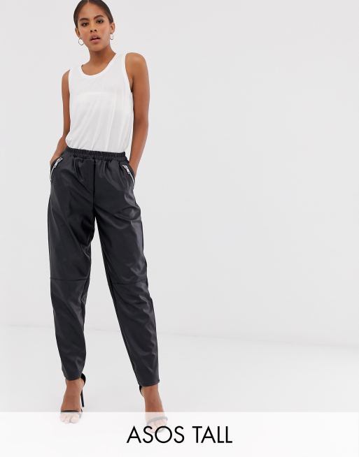 ASOS DESIGN – Tall – Zwężane spodnie z imitacji skóry