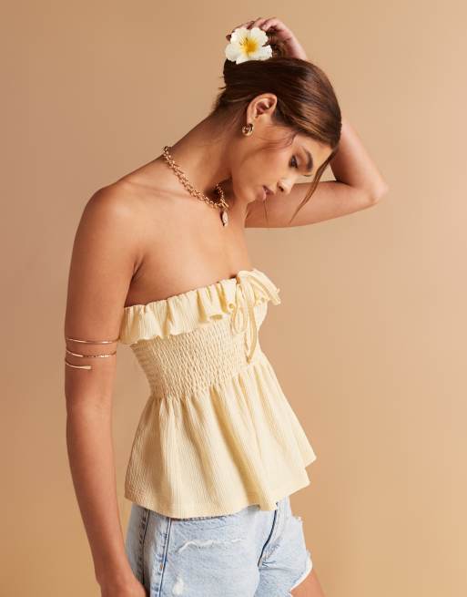 ASOS DESIGN – Teksturowany marszczony top w stylu babydoll z wiązaniem z przodu w cytrynowym kolorze