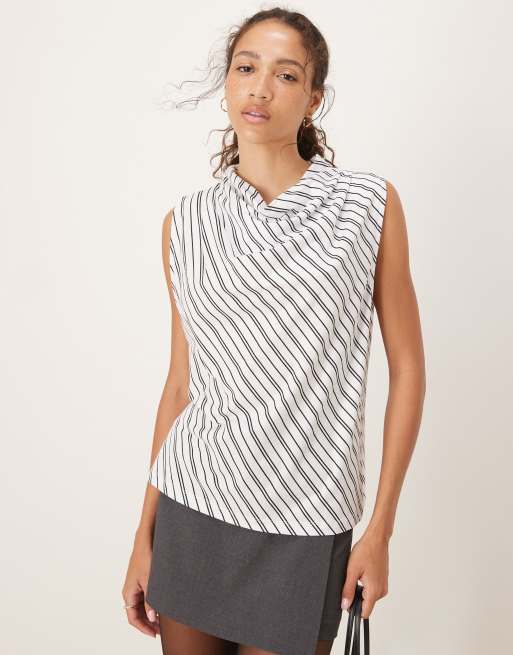 ASOS DESIGN – Top bez rękawów z drapowanym dekoltem w czarno-białe paski