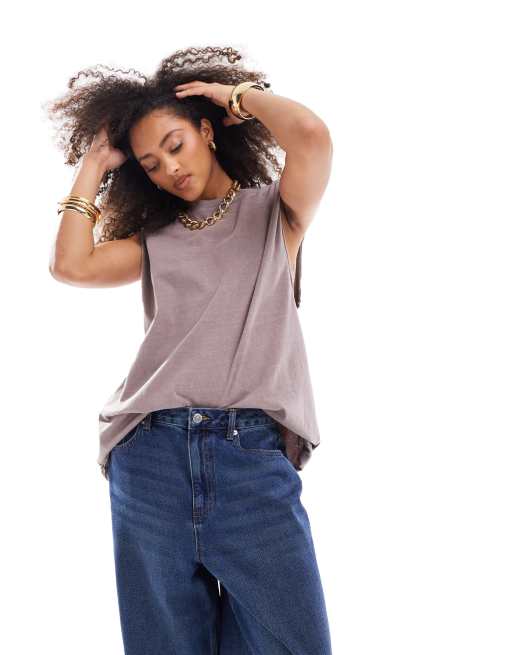 ASOS DESIGN – Top oversize bez rękawów z obniżoną linią pach w spranym czekoladowym kolorze