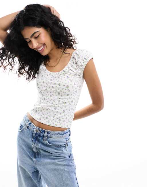 ASOS DESIGN – Top z bufkami w drobny kwiatowy wzór