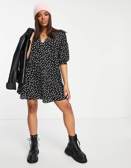 ASOS DESIGN – Trapezowa monochromatyczna sukienka mini w grochy z dekoltem w szpic