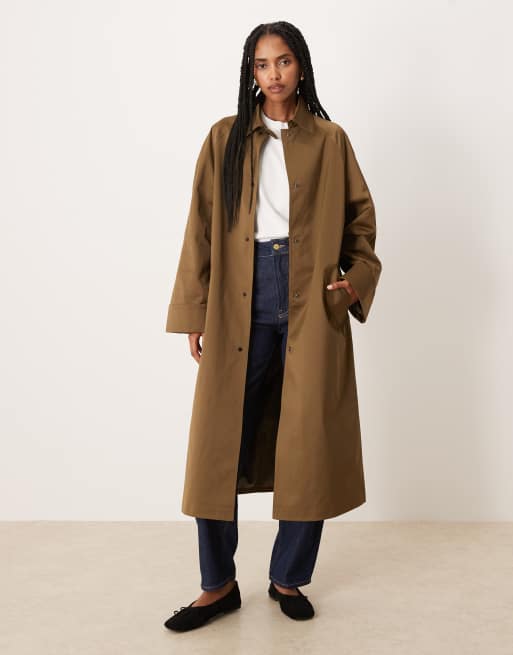 ASOS DESIGN – Trencz o wydłużonym fasonie w kolorze khaki
