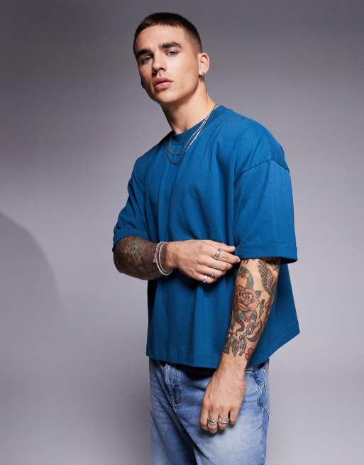 ASOS DESIGN – Turkusowy T-shirt oversize z podwijanymi rękawami o gramaturze 240 g/m²