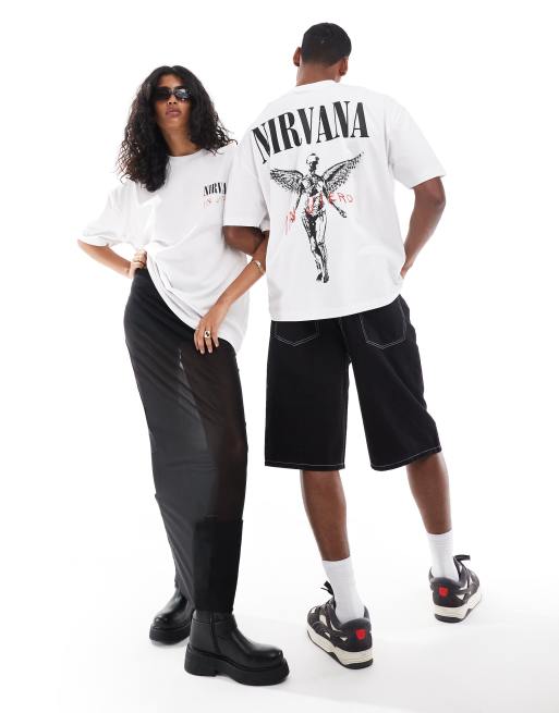 ASOS DESIGN Unisex – Biały T-shirt oversize z haftowanym wzorem z motywem zespołu Nirvana