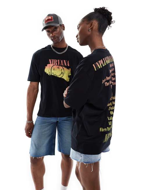 ASOS DESIGN Unisex – Czarny T-shirt oversize z licencjonowaną grafiką z motywem Nirvana