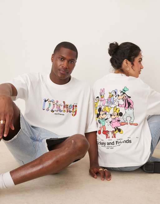 ASOS DESIGN Unisex – Disney – Biały T-shirt o pudełkowym kroju oversize z grafiką Myszki Miki i przyjaciół