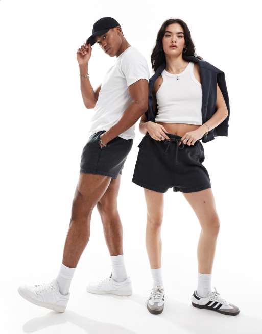 ASOS DESIGN Unisex – Krótkie szorty o dopasowanym kroju w spranym czarnym kolorze