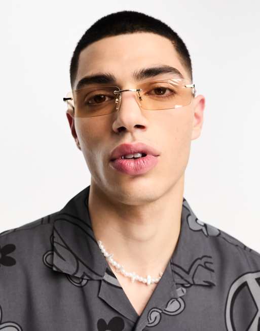 ASOS DESIGN – Wąskie okulary przeciwsłoneczne bez oprawek ze złotymi soczewkami