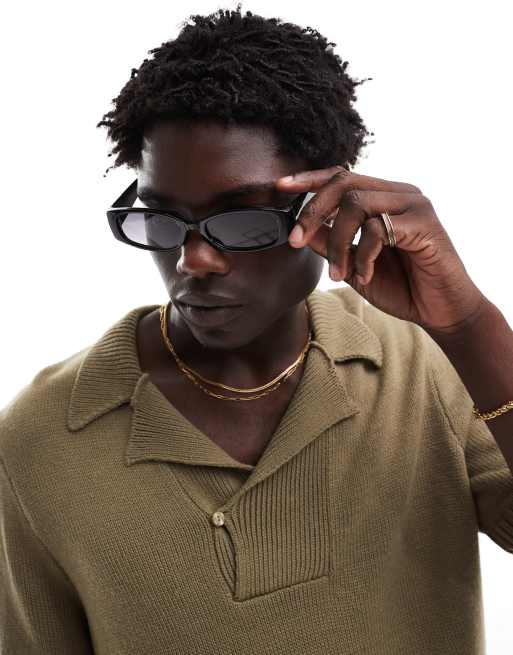 ASOS DESIGN – Wąskie prostokątne okulary przeciwsłoneczne w czarnych oprawkach z przydymionymi soczewkami