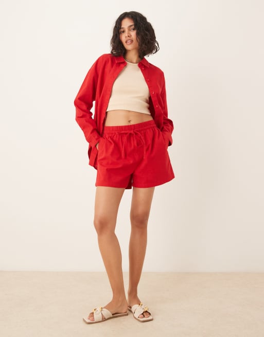 ASOS DESIGN – Wciągane czerwone szorty z materiału o wyglądzie lnu, część zestawu