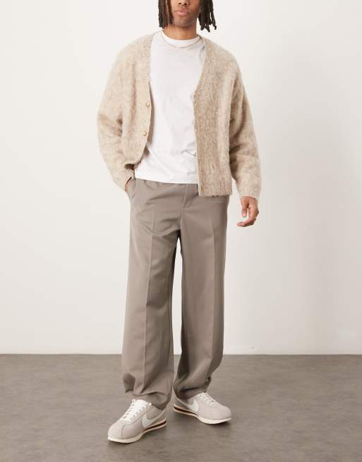 ASOS DESIGN – Wciągane eleganckie spodnie z szerokimi nogawkami i zapięciem na zatrzaski na dole w zgaszonym kolorze khaki