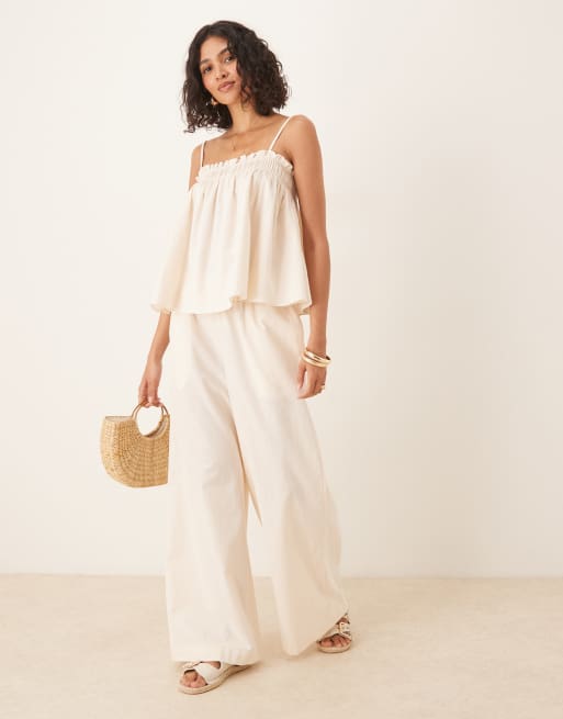 ASOS DESIGN – Wciągane kremowe spodnie z marszczoną talią, część zestawu