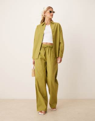 ASOS DESIGN – Wciągane oliwkowe spodnie o lnianym wyglądzie, część zestawu