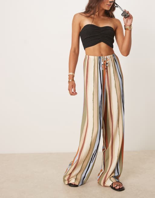 ASOS DESIGN – Wciągane spodnie z mieszanki lnianej w kolorowe paski