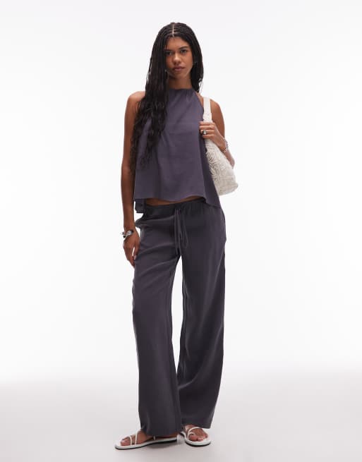 ASOS DESIGN – Wciągane szare spodnie o luźnym kroju z modalu