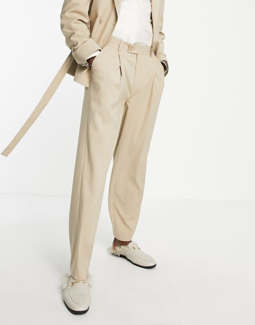 ASOS DESIGN Wedding – Beżowe spodnie z balonowymi nogawkami