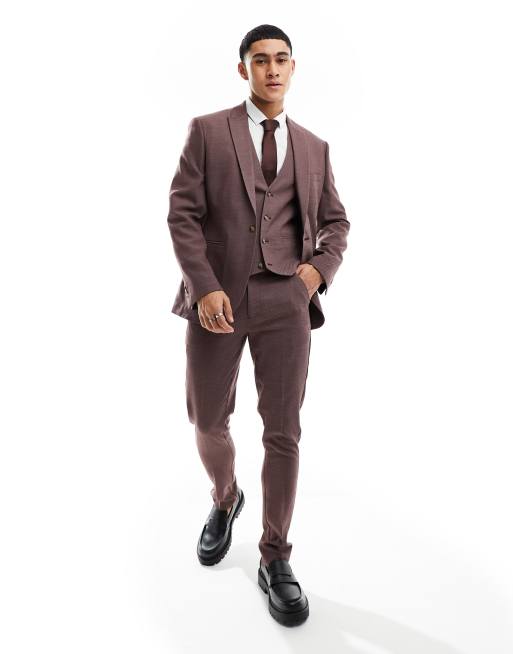 ASOS DESIGN Wedding – Bordowa marynarka garniturowa z drobną teksturą o obcisłym kroju