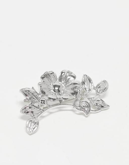 ASOS DESIGN Wedding – Broszka z kwiatowym motywem w srebrnym kolorze