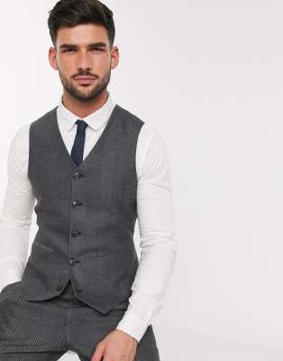 ASOS DESIGN Wedding – Ciemnoszara obcisła kamizelka w jodełkę z domieszką wełny