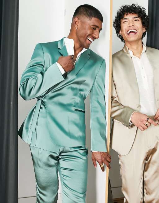 ASOS DESIGN Wedding – Ciemnozielona marynarka garniturowa o dopasowanym kroju z wiązaniem