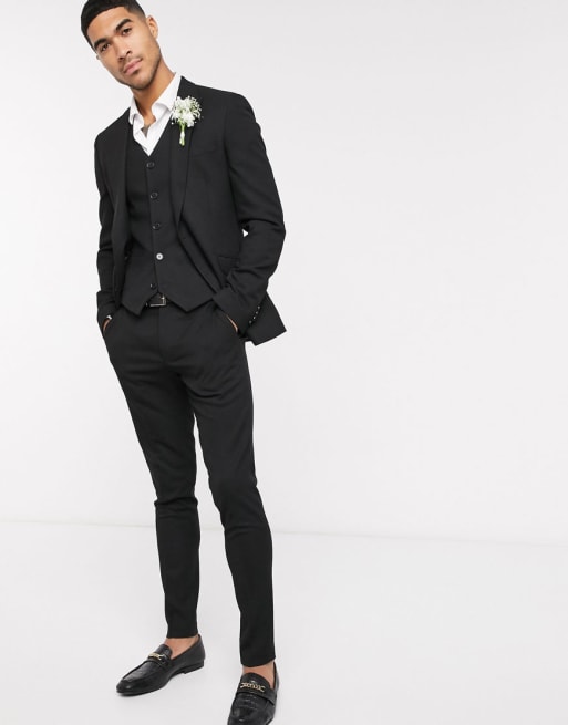 ASOS DESIGN Wedding – Czarny garnitur o bardzo obcisłym kroju z materiału o drobnej teksturze