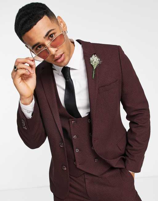 ASOS DESIGN Wedding – Czerwono-granatowa marynarka garniturowa o bardzo obcisłym kroju i drobnej teksturze