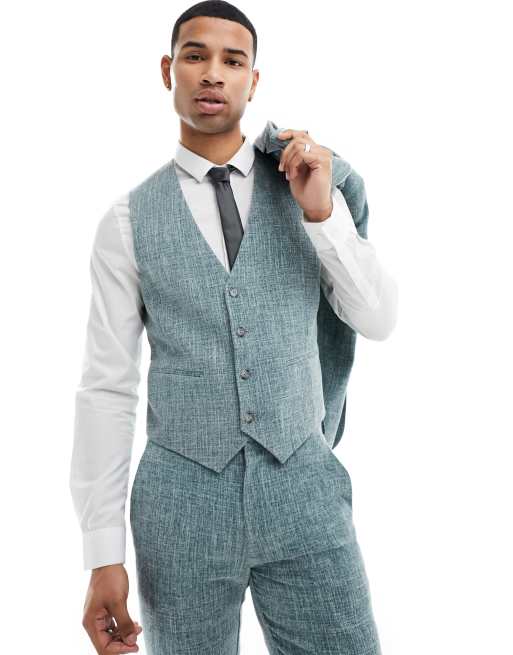 ASOS DESIGN Wedding – Dopasowana kamizelka z zielonej tkaniny typu crosshatch