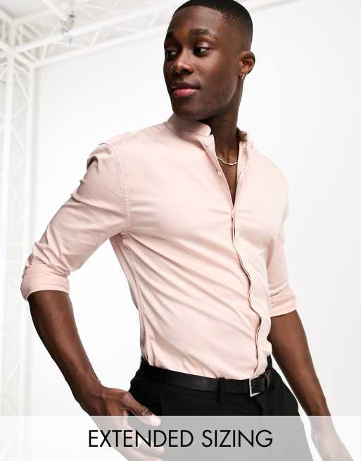 ASOS DESIGN Wedding – Dopasowana satynowa koszula ze stójką w jasnoróżowym kolorze