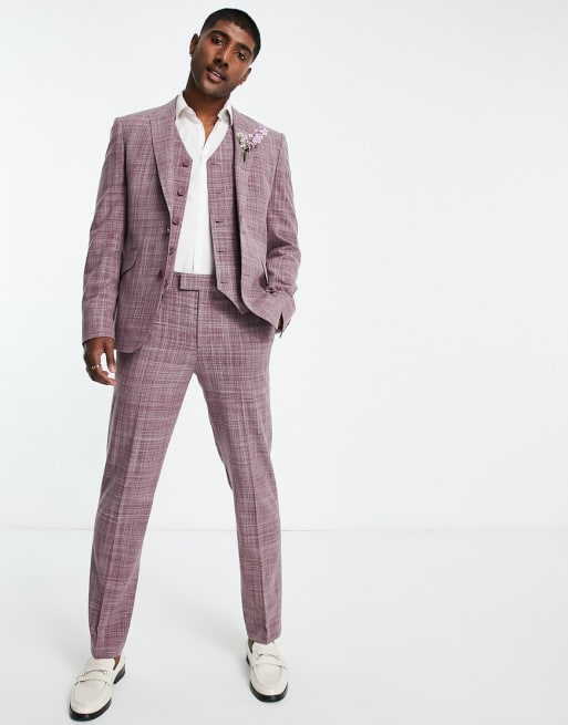 ASOS DESIGN Wedding – Dopasowany bordowy garnitur z krzyżykowym wzorem