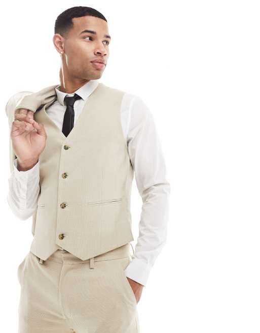 ASOS DESIGN Wedding – Kamiennobeżowa kamizelka garniturowa o bardzo obcisłym kroju