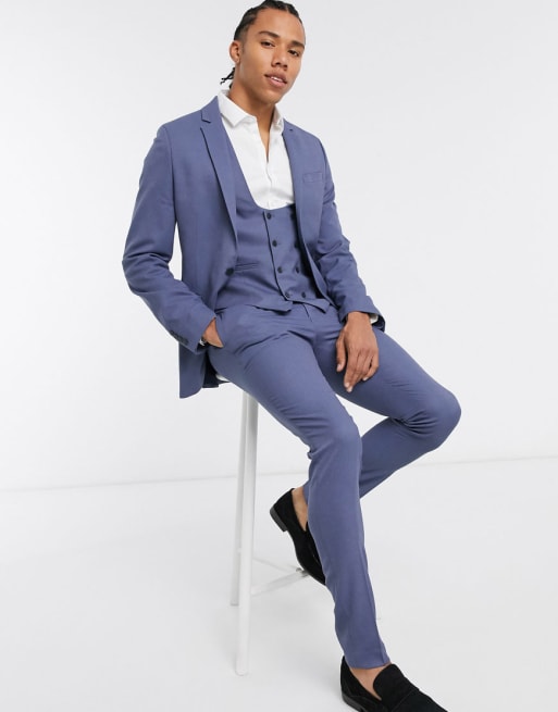 ASOS DESIGN Wedding – Niebieski teksturowany garnitur o bardzo obcisłym kroju