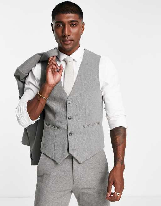 ASOS DESIGN Wedding – Szara obcisła kamizelka garniturowa z mieszanki wełny o koszykowym splocie