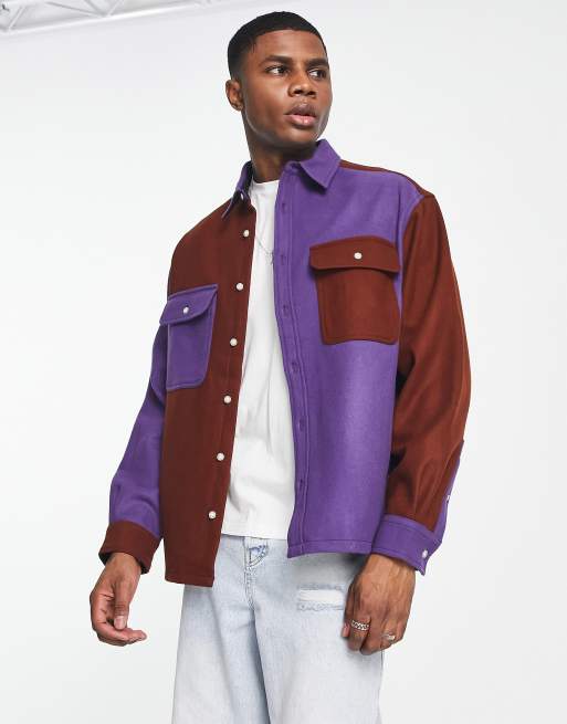 ASOS DESIGN – Wełniana koszula oversize w fioletowo-brązowym kolorze