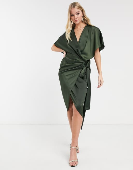 ASOS DESIGN – Wiązana w talii kopertowa sukienka midi