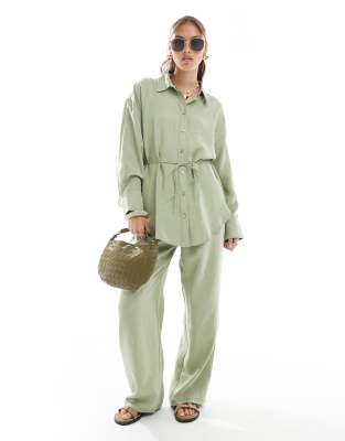 ASOS DESIGN – Wiązana w talii koszula z modalu w kolorze khaki, część zestawu