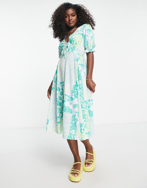 ASOS DESIGN – Wiązana z przodu sukienka midi w zielony kwiatowy wzór