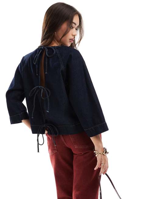 ASOS DESIGN – Wiązany na plecach jeansowy top o pudełkowym kroju w kolorze indygo