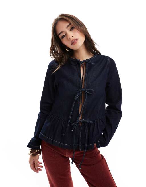 ASOS DESIGN – Wiązany z przodu jeansowy top w kolorze indygo