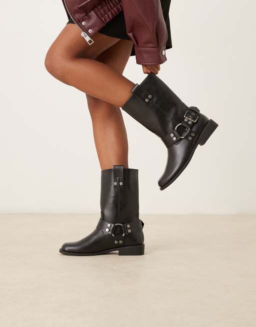 ASOS DESIGN Wide Fit – Arley – Czarne płaskie botki biker