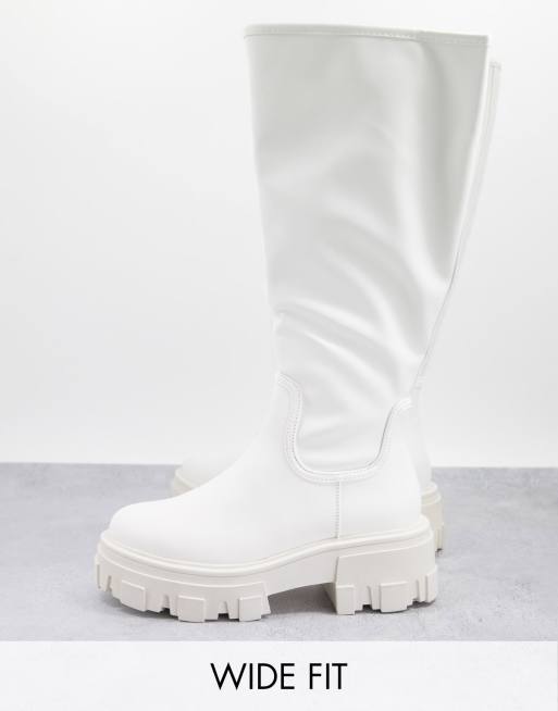 ASOS DESIGN Wide Fit – Carla – Białe buty na płaskiej masywnej podeszwie