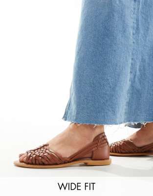 ASOS DESIGN Wide Fit – Francis – Jasnobrązowe plecione sandały ze skóry na płaskiej podeszwie