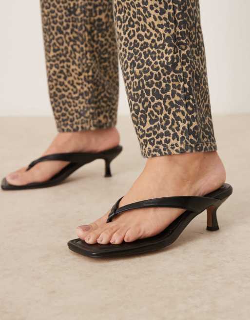 ASOS DESIGN Wide Fit – Hawaii – Czarne sandały japonki na obcasie-kaczuszce